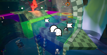 I iterate a lot on each level beat to always improve the level. As the camera is very unique on this game, I did a lot of quick abstract levels to test an idea to make sure it works with the game mechanics and supports our original game concept.