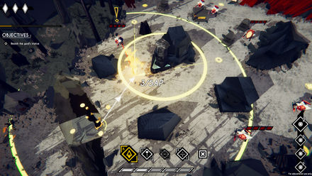 In this game, you control only one character who uses sacred discs to defeat his enemies. The player can throw and recall discs around the character. The trajectory depends on the skills equipped.